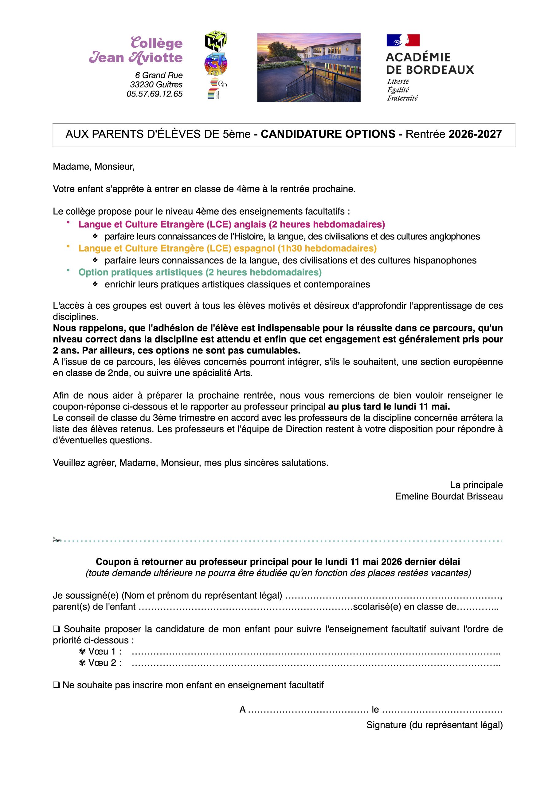 Choix des options en 4e ! avant le 11 mai !24 Avr 2026 | Anglais, Arts Plastiques, Disciplines, Espagnol, Informations ponctuelles