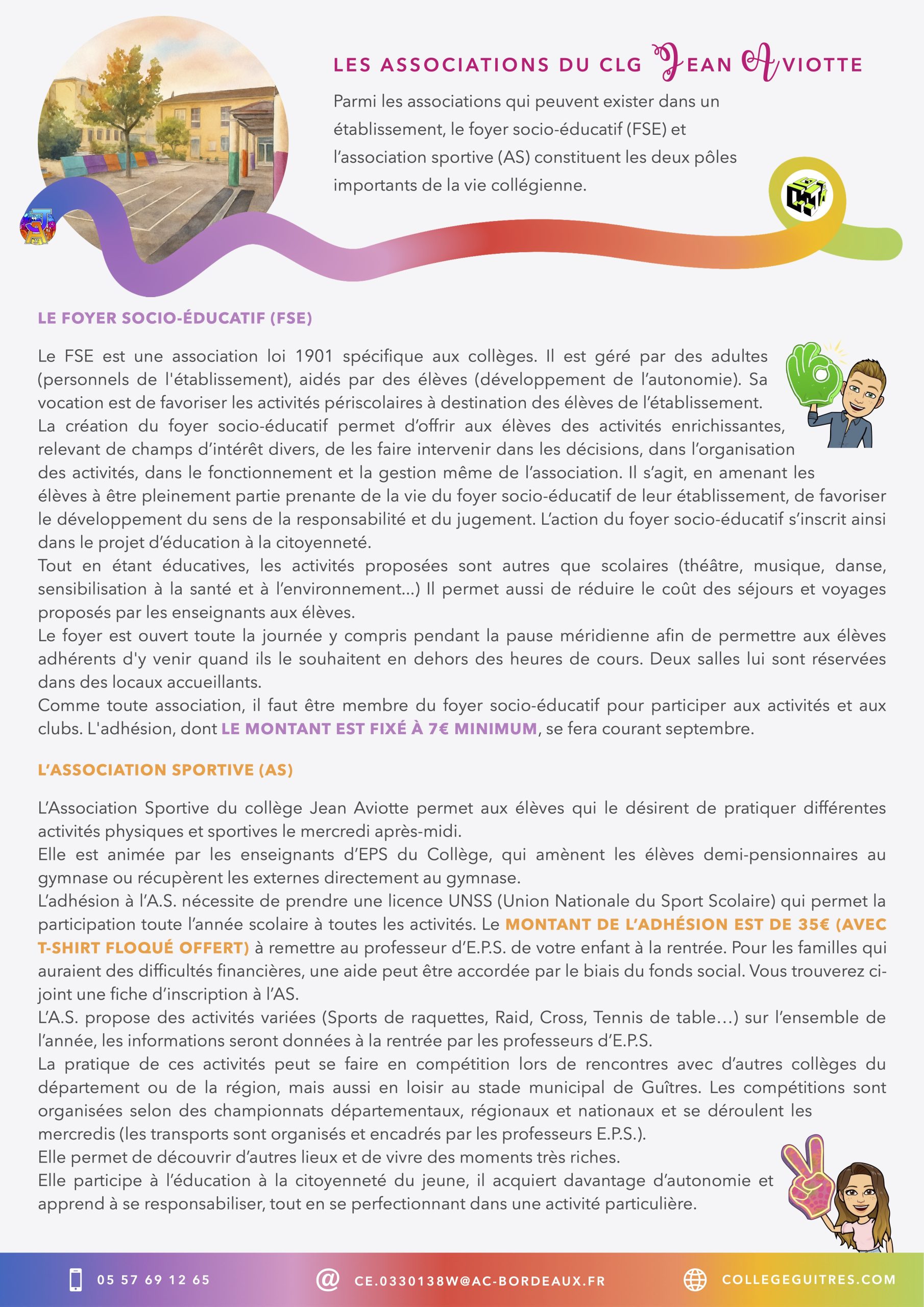 Chaque année, le Foyer Socio-Éducatif (FSE) du collège Jean Aviotte agit pour améliorer la vie quotidienne des élèves, soutenir les projets éducatifs et développer l’esprit de solidarité au sein de l’établissement. Comme le rappelle notre document de cotisation, le FSE est une association loi 1901 au service des collégiens, portée par des adultes et des élèves, avec pour vocation de favoriser les activités périscolaires et le bien vivre ensemble.